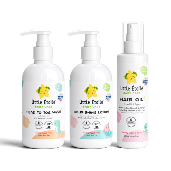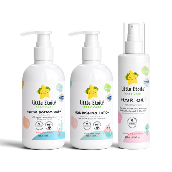 Safety first with Little Étoile® Care – our Hair Oil has been dermatologically tested and is safe for sensitive skin.