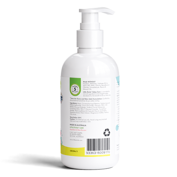Our HEAD TO TOE BUBBLY WASH was found to be safe for sensitive skin in a study erformed by an accredited dermatology clinic on 54 Australian subjects. It showed no signs of skin irritation (dermatologist’s score of 0/4) on upper arm skin after 24 exposure. Read full report.(Reference: Ozderm Pty Ltd. 20231009, protocol MBC02, pp1-20)