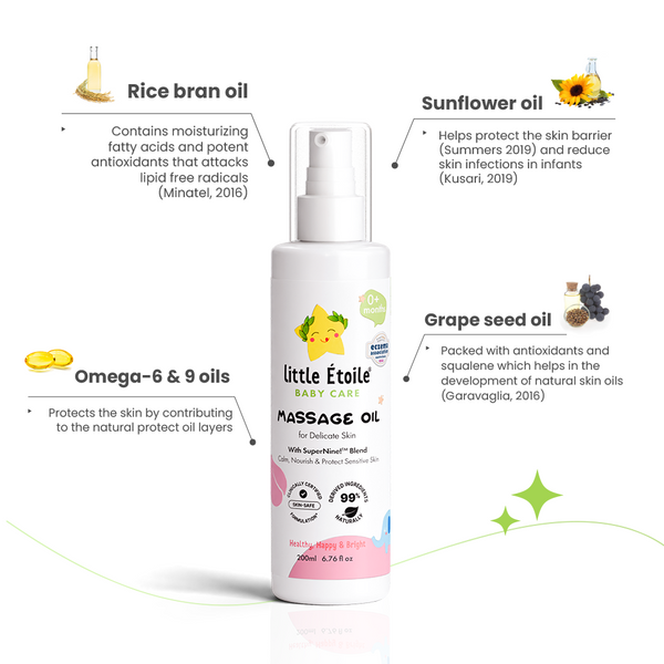 Little Étoile® Care Massage Oil is both versatile and powerful, expertly formulated to serve four distinct functions: