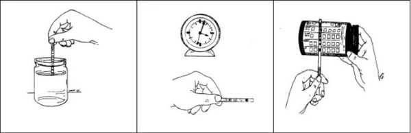 A stronger intensity of red represents a higher level of dissolved chlorine remaining in the solution after reaction with a sample of product, while a less intense colour represents lower chlorine levels in solution after reaction with a sample of product.