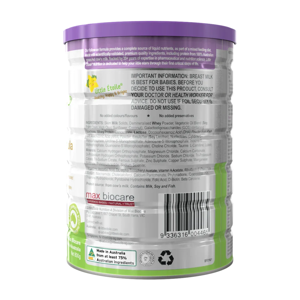 Our Little Étoile® Nutrition Stage 2 Premium Follow-on Formula is made from Australian grass-fed cow’s milk, with scientifically validated, premium quality ingredients formulated to meet the nutritional needs of babies from 6 months to 1 year of age. Backed by 20+ years of expertise in pharmaceutical and nutrition science, Little Étoile Nutrition is dedicated to help your little stars through their first critical steps of life.