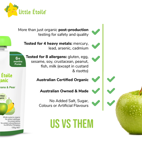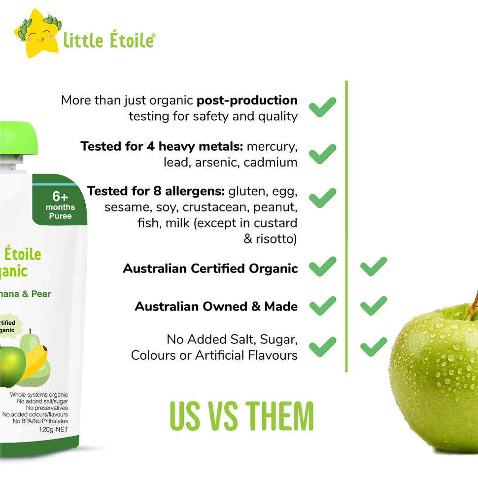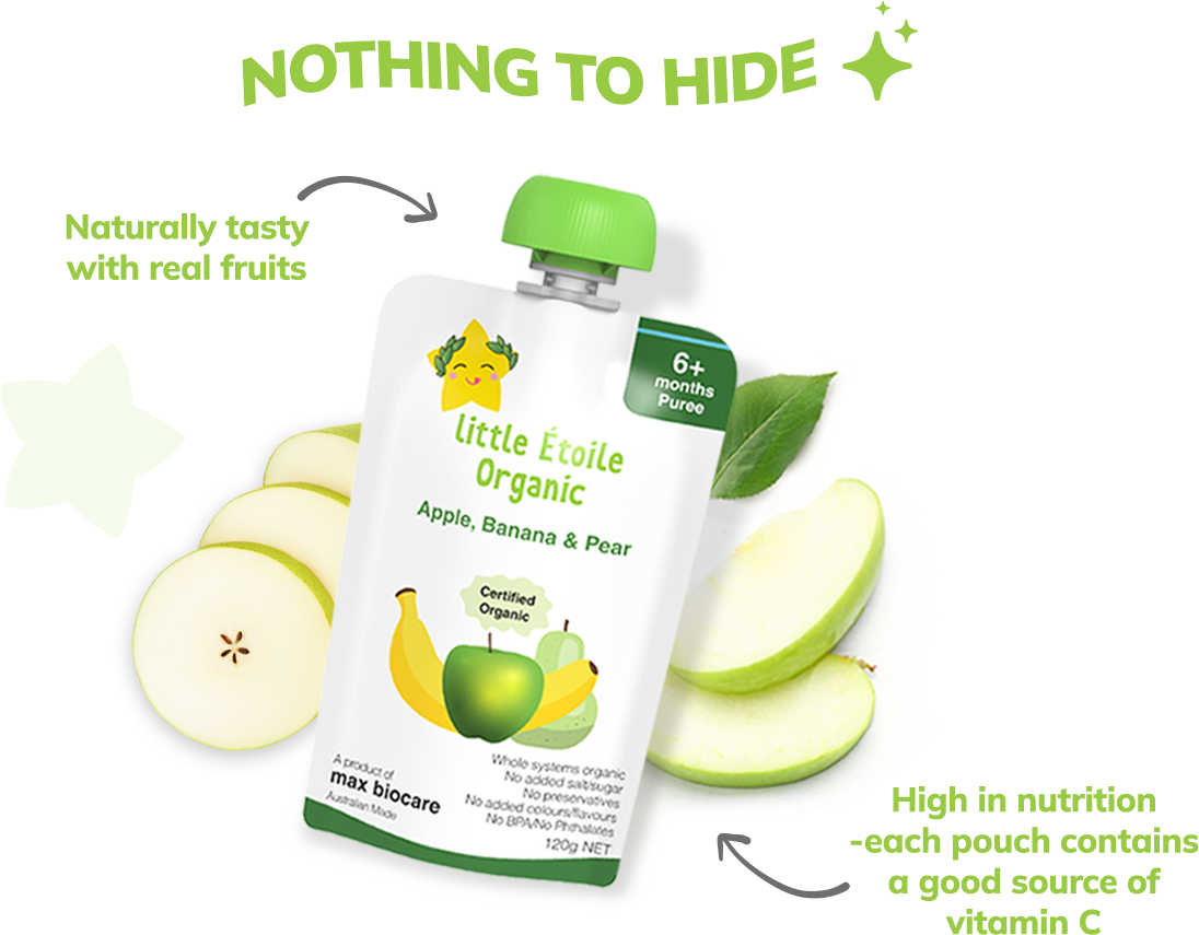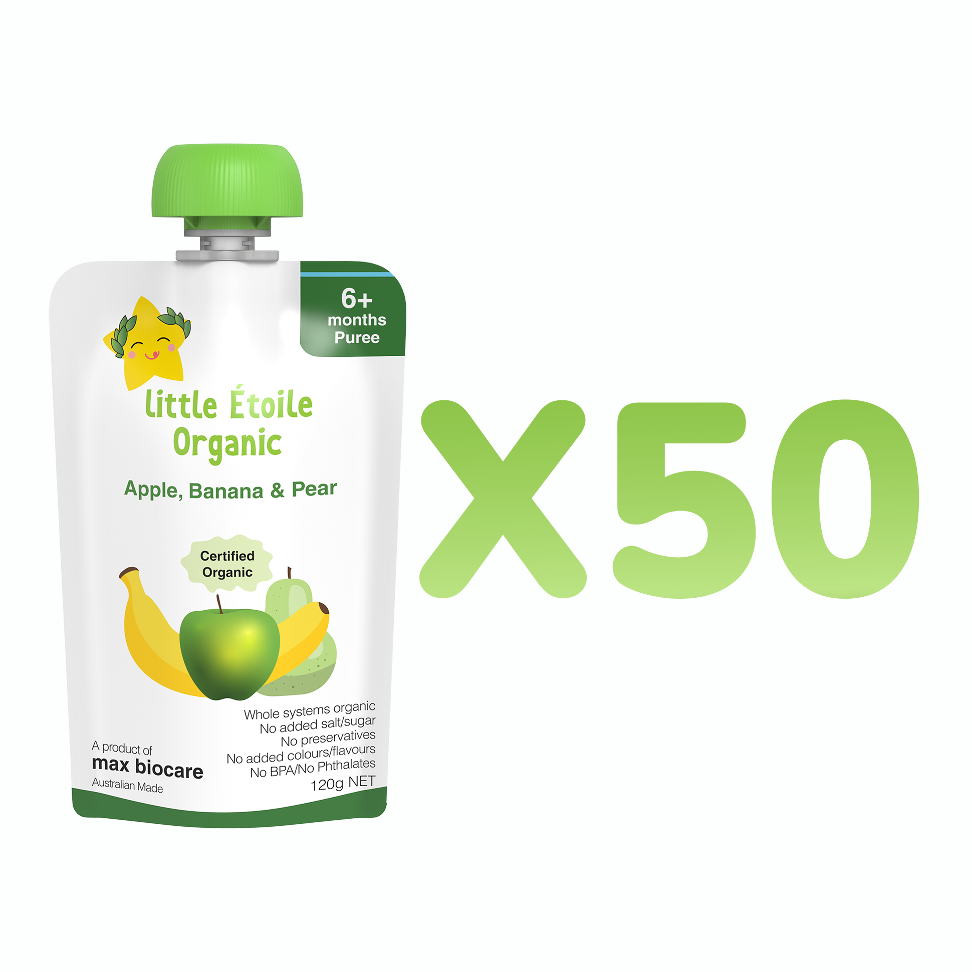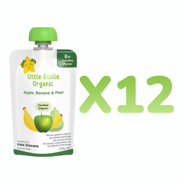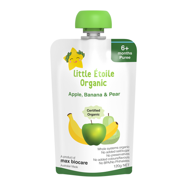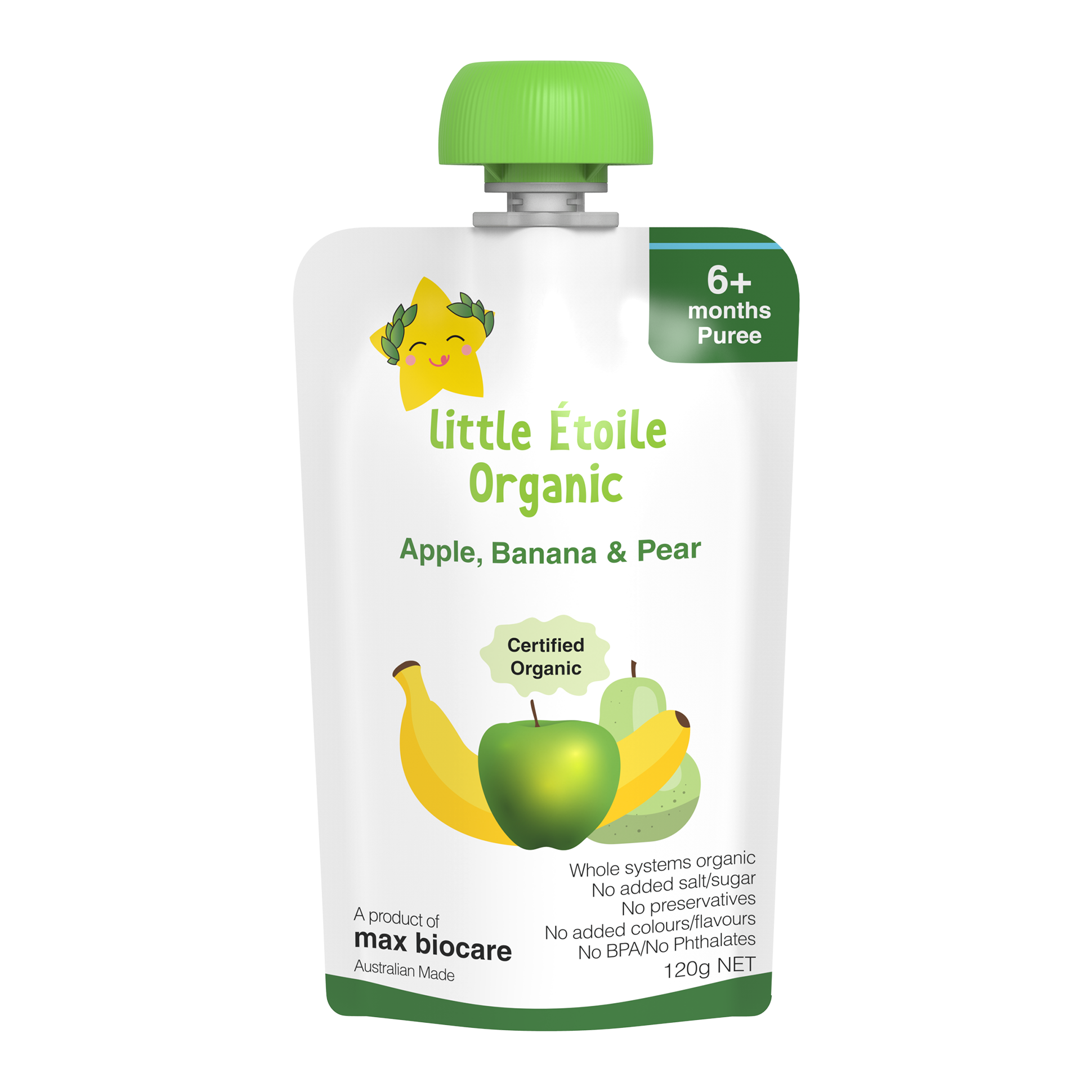 Organic Apple, Banana & Pear Baby Food – 6+ Months, 120g (Free Gift)