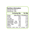 | Energy | kJ (kCal) | 326 (78) | 272 (65) |